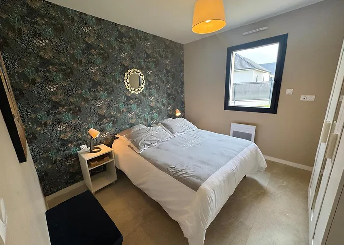 1-ložnicová La Fossette, Maison Neuve Au Coeur Des Plages nabízí pokoje s výhledy na zahradu a se nachází 3 km od Muzeum Dne D v Arromanches. Vila nabízí kompletní kuchyni i pokoje s místností na posezení, TV s plochou obrazovkou se satelitními kanály a detektory kouře.
